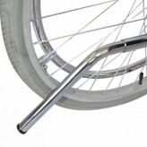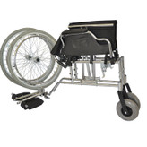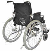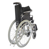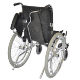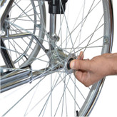 چرخ عقب ویلچر با لاستیک بادی 24 اینچ و طوقه آلومینیوم و هندریم روکش آبکاری کروم با قابلیت تنظیم ارتفاع و پیمی طراحی شده است که با فشردن دکمه ی آن از بدنه ویلچر به راحتی جدا می شود.