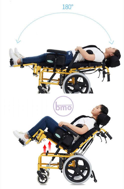 ویلچر سی پی دو اهرم پشتی دارد که میتوان با فشار دادن اهرم ها پشت ویلچر به حالت خوابیده در آورد که در این حالت ویلچر مثل تخت میشود و کاربر راحت میتواند روی آن دراز بکشد.