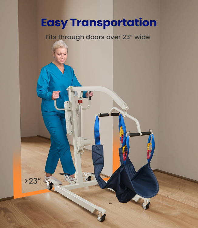 بالابر دورت بلند کردن و پایین آمدن صاف از 31 اینچ به 68 اینچ را بدون هیچ گونه فشاری تضمین میکند و برای انتقال بیماران بین ویلچر، تخت، مبل یا حمام ایدهآل است.