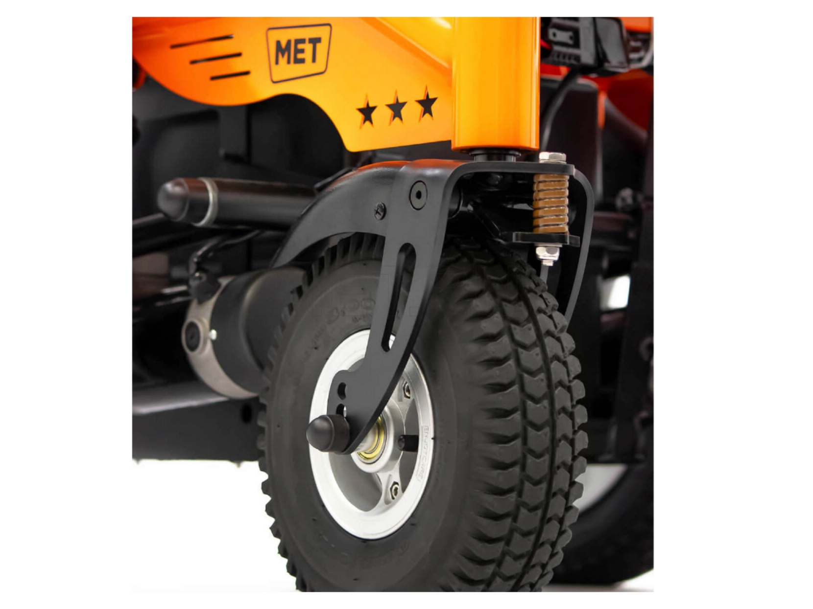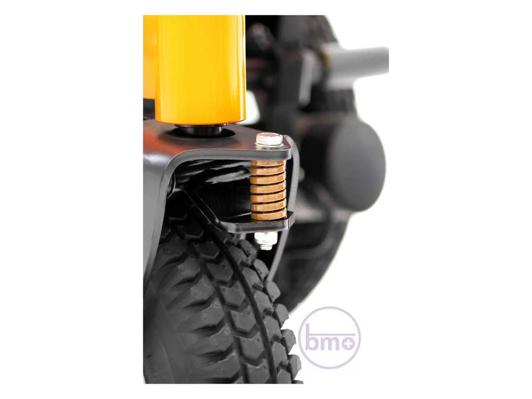 کمکفنرهای بهکاررفته در چرخهای جلو، ضربات ناشی از عبور از ناهمواریها، درز سرامیک، آستانه درها و مسیرهای شهری را جذب میکنند و مانع انتقال تکانهای ناگهانی به بدن کاربر میشوند.