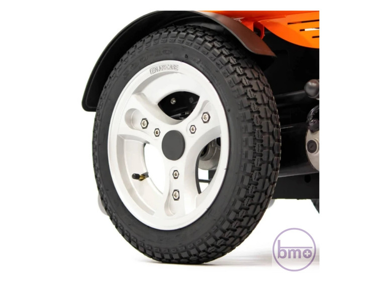 چرخهای عقب ویلچر برقی ENJOYCARE EPW60A نقش اصلی در تأمین قدرت و پایداری حرکت را بر عهده دارند. این چرخها مستقیماً به موتورهای الکتریکی متصل هستند و نیروی لازم برای حرکت یکنواخت و ایمن ویلچر را فراهم میکنند.