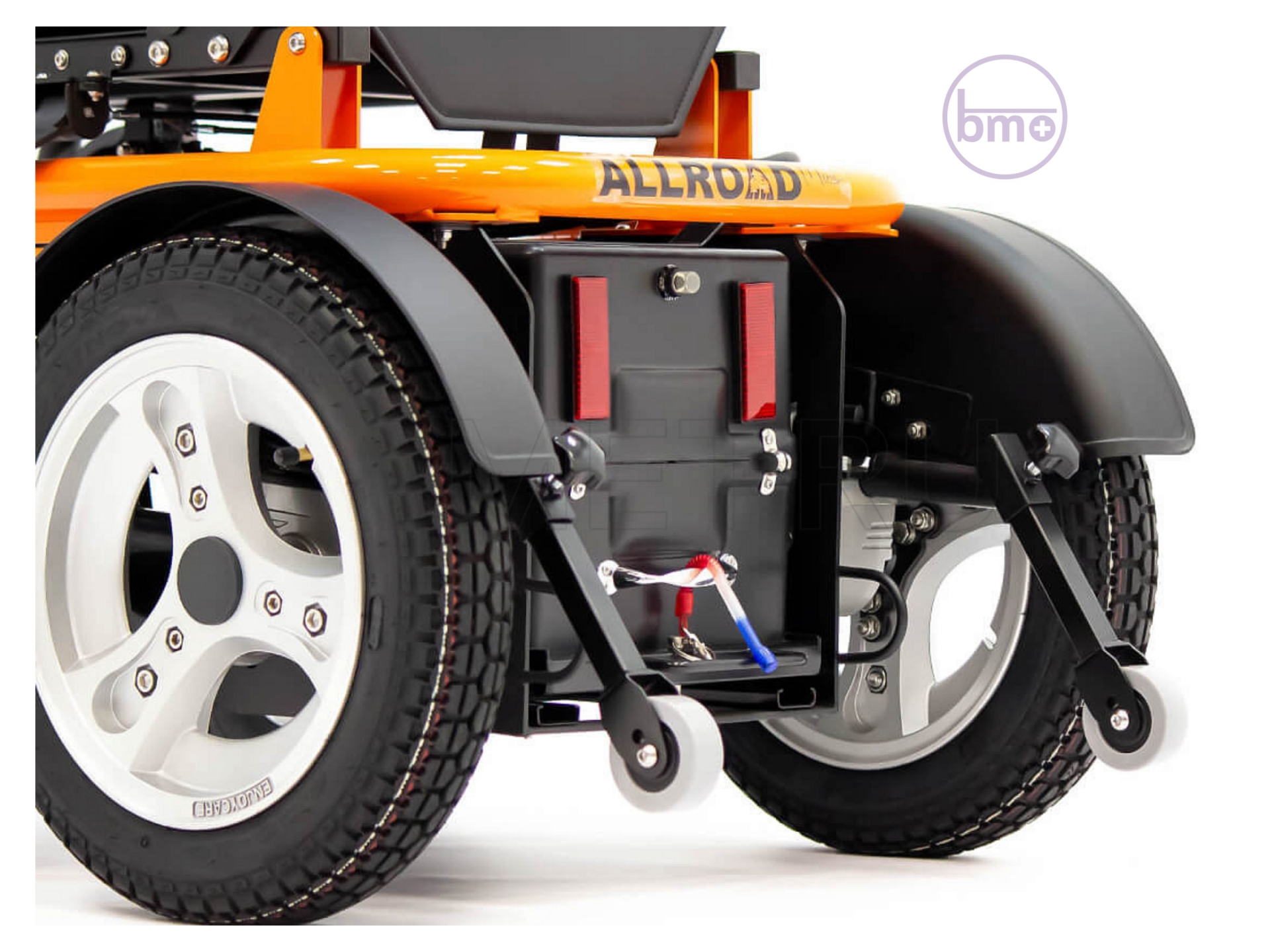 طراحی مناسب چرخ عقب باعث میشود ویلچر روی سطوح مختلف شهری تعادل خوبی داشته باشد و هنگام حرکت مستقیم یا عبور از ناهمواریهای معمول، ثبات خود را حفظ کند.