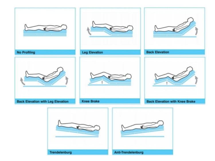 با این عملکردها، بیمار را می توان در موقعیت های صندلی ترندلنبورگ، فاولر، نیمه فاولر، بالا فاولر و صندلی استاندارد قرار داد.