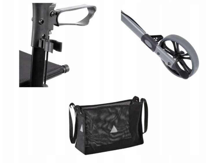 به لطف دستگیرههای راحت، ترمزهای روان، دستگیرههای قابل تنظیم ارتفاع، بازتابندههای متعدد و توری صندلی با مراقبت آسان، رولاتور حداکثر راحتی و ایمنی را ارائه میکند.