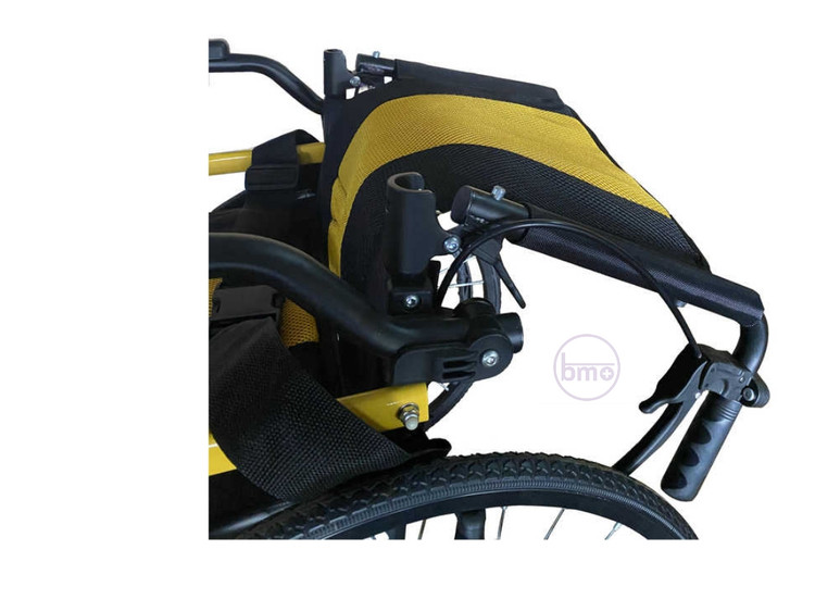 دارای ترمز و کنترل حرکت ویلچر روی دسته های عقب و روی چرخ عقب