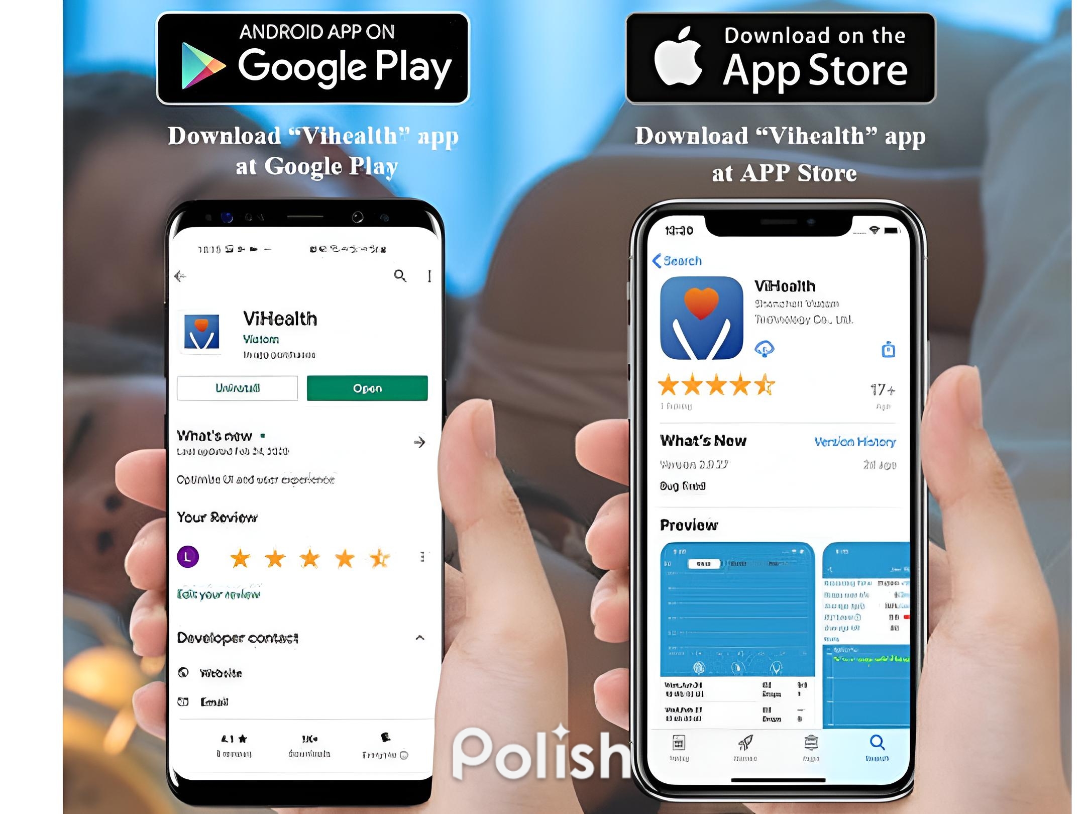 به کمک بلوتوث و اپلیکیشن اختصاصی ViHealth یا اپهای مشابه (بسته به منطقه)، کاربر میتواند دادههای ثبتشده را در موبایل خود ذخیره، مرور و تحلیل کند.