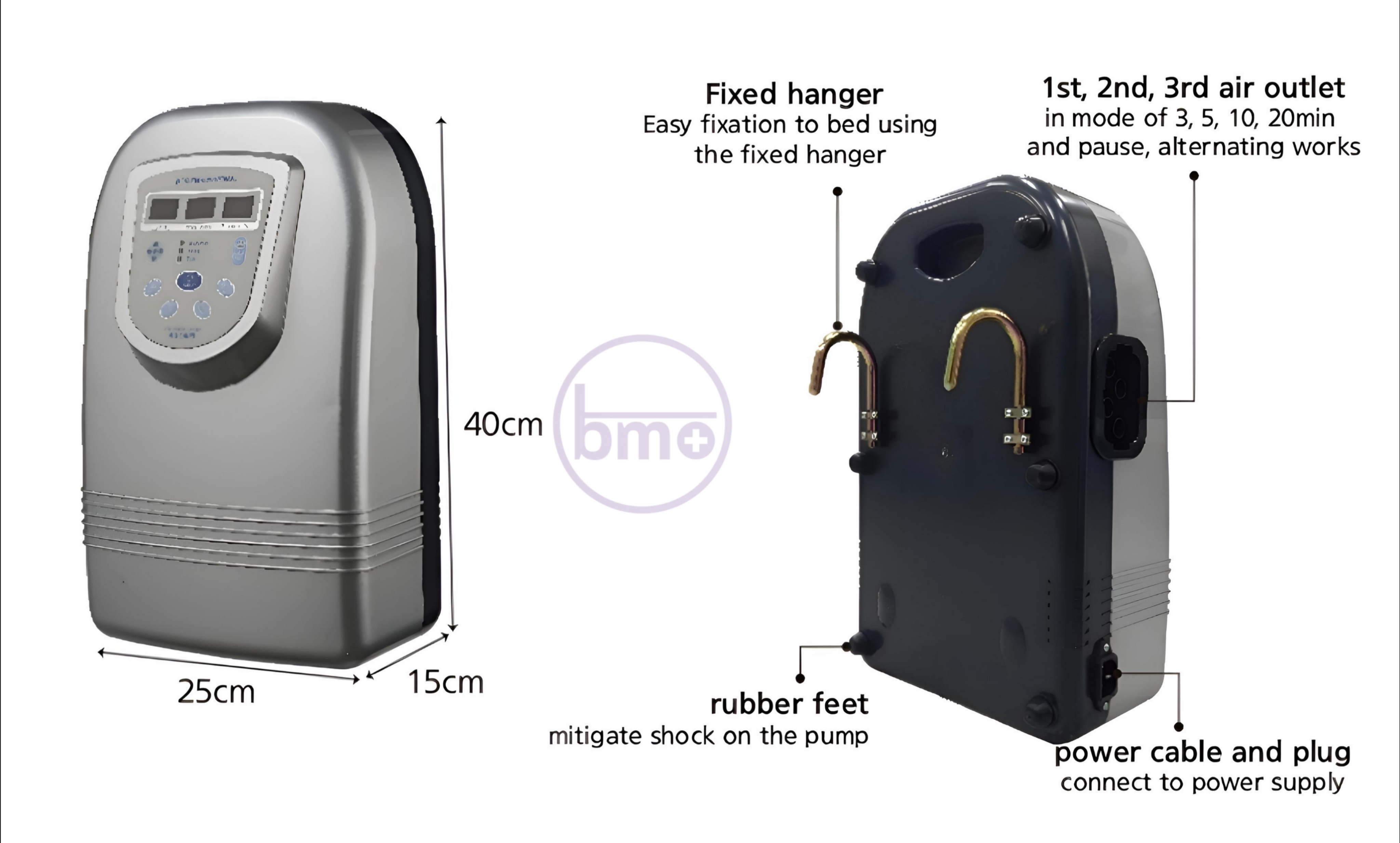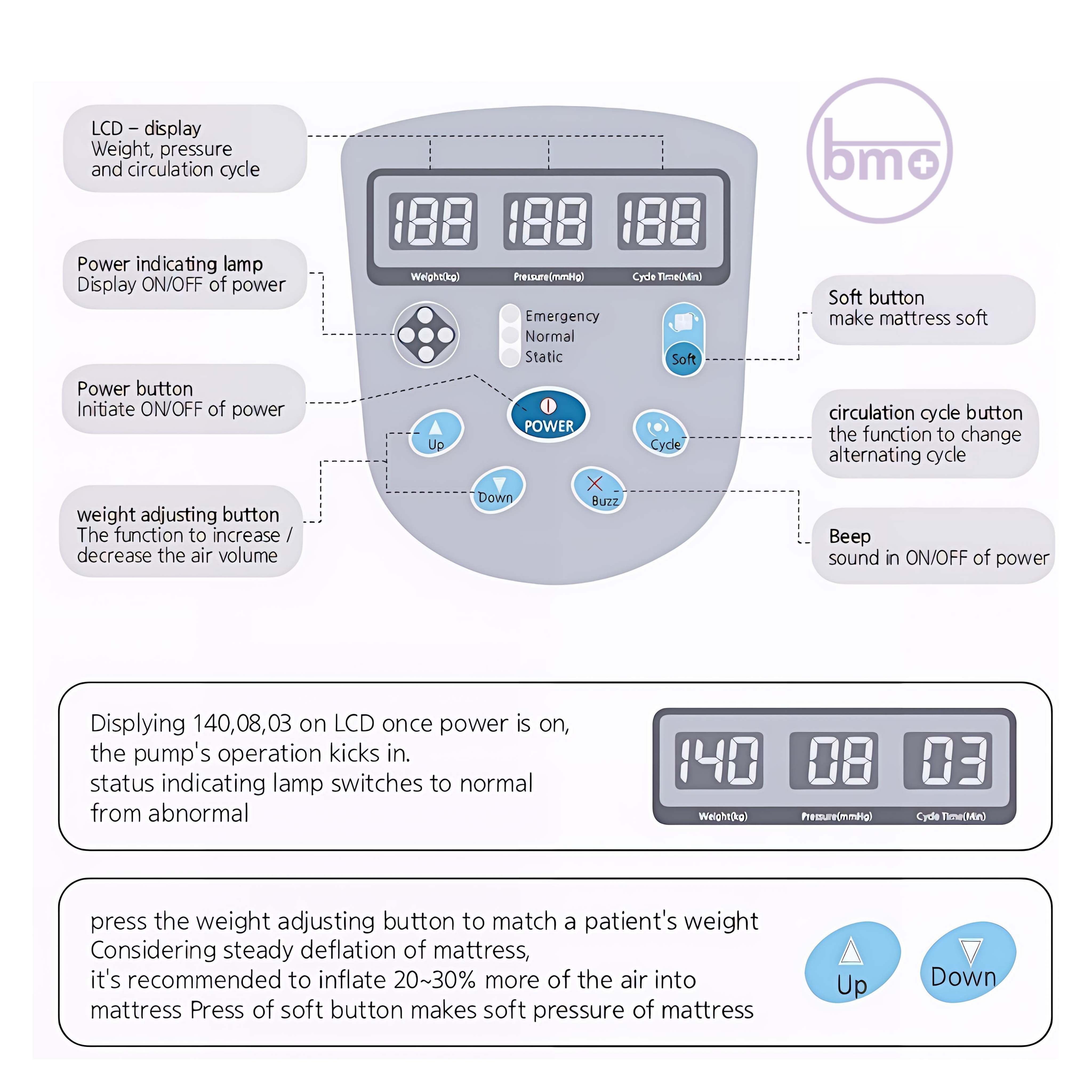 پمپ دارای کنترل فشار دقیق بر اساس وزن بیمار (۲۰ تا ۱۴۰ کیلوگرم).