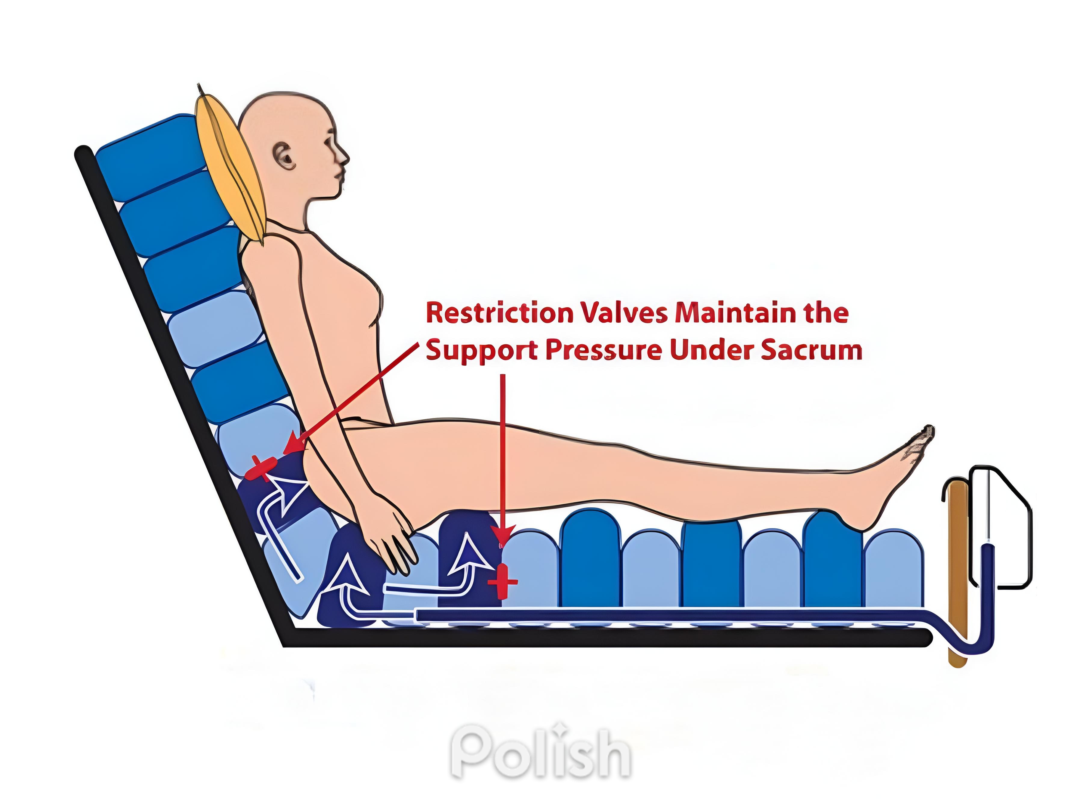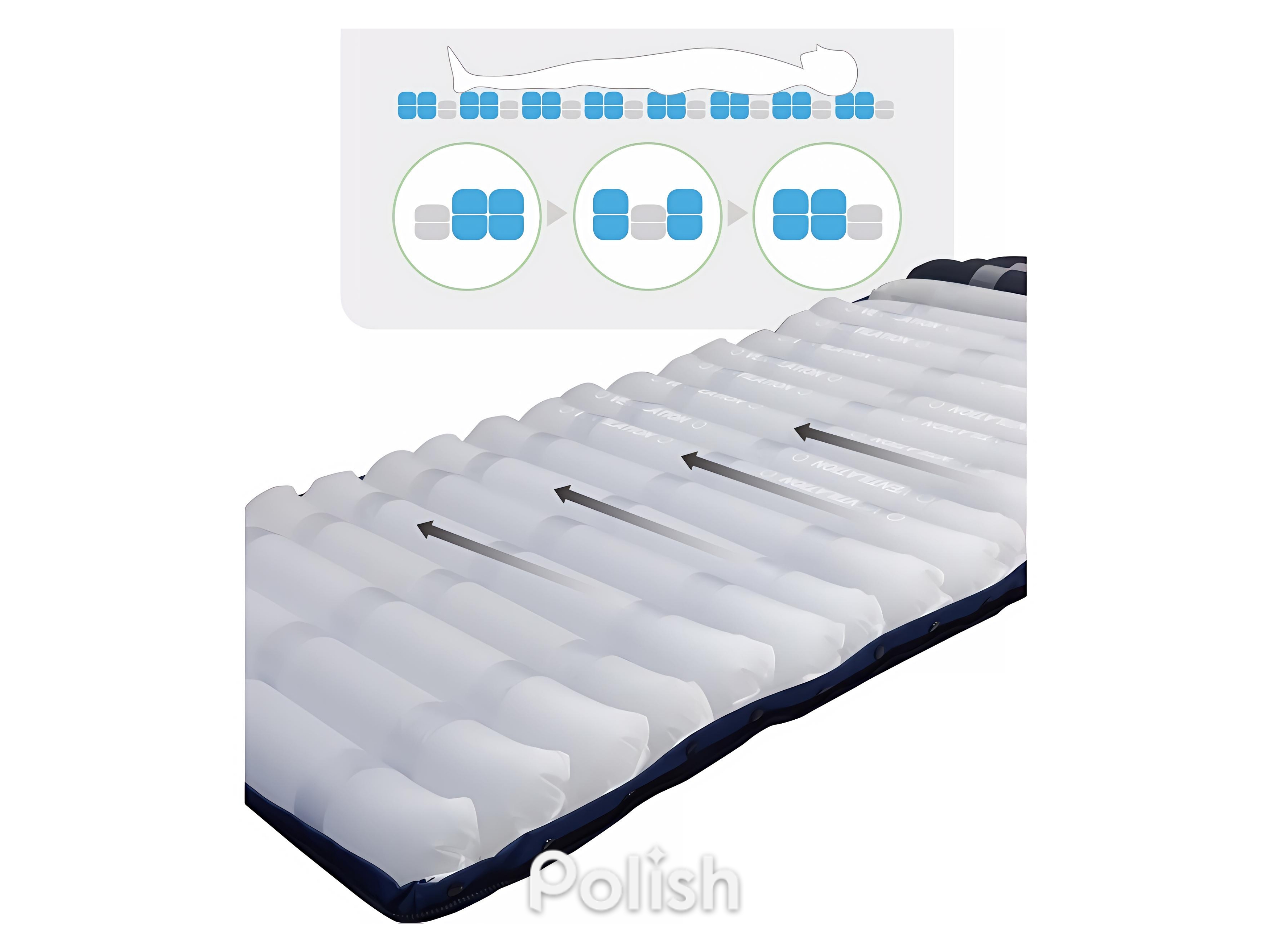 تشک از ۱۷ سلول هوایی مستقل ساخته شده که بهصورت متناوب پر و خالی میشوند. این عملکرد باعث توزیع یکنواخت فشار در سطح بدن شده و نقاط پرخطر مانند پاشنه، لگن، کمر و شانهها از فشار مداوم محافظت میشوند.