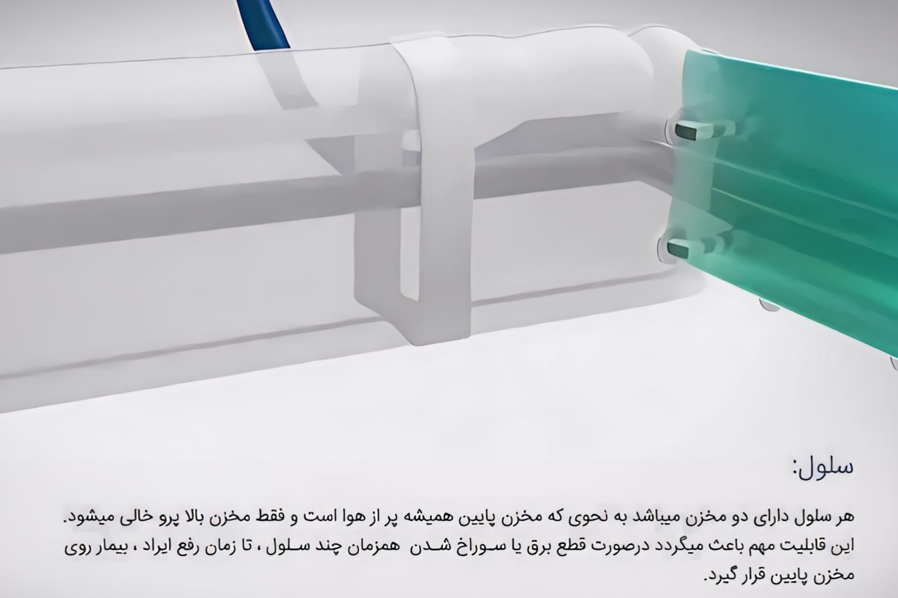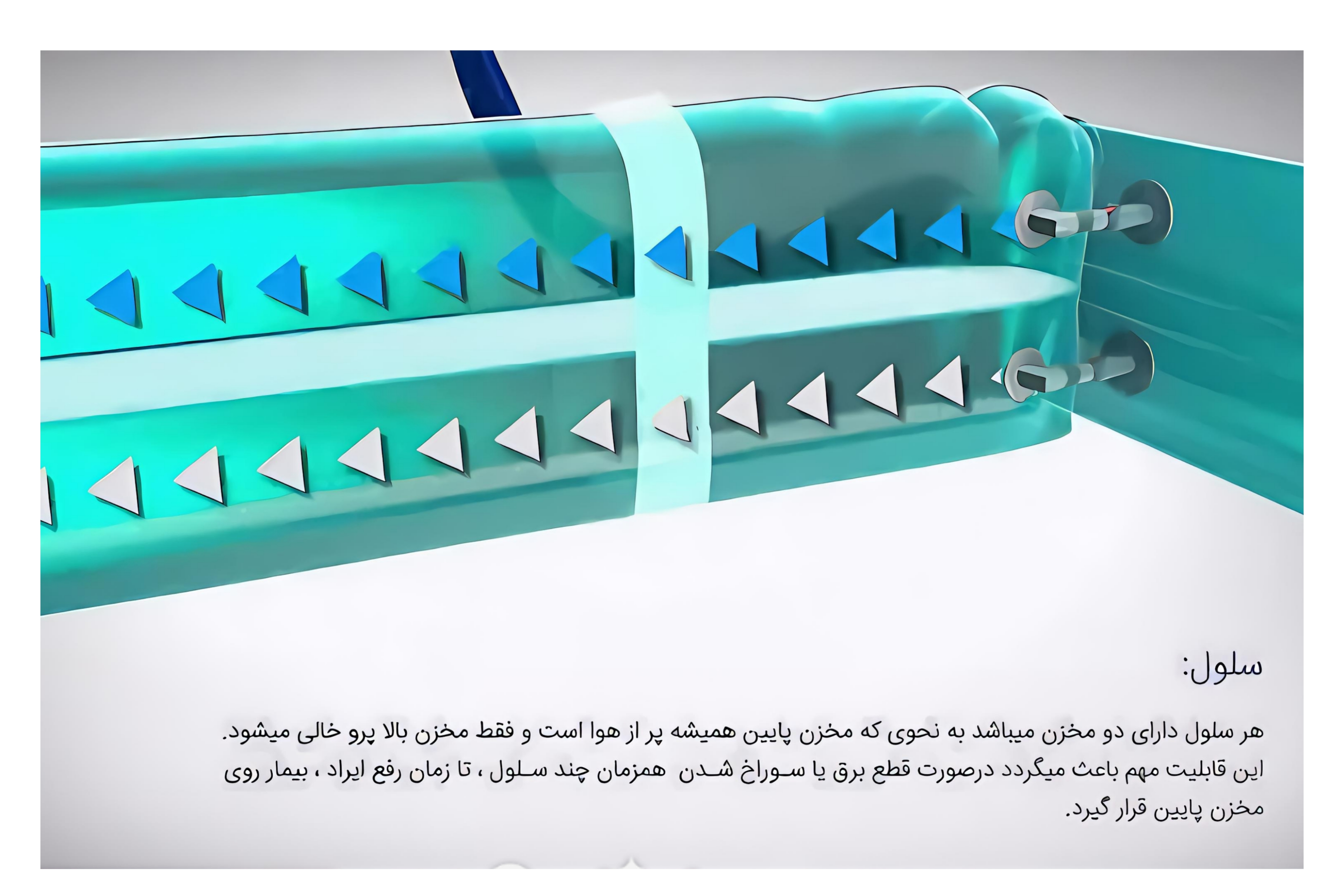 همچنین 3 سلول زیر سر بیمار برای آسودگی بیشتر همیشه ثابت می ماند و پر و خالی نمیشود که به آن Pillow Cell گفته میشود .