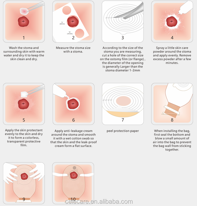 3. لایه محافظ چسب را جدا و کیسه را روی استوما قرار دهید.