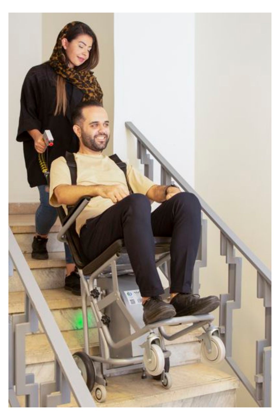 دستگاه طوری طراحی شده که در حالت عادی مثل یک ویلچر برقی جمعوجور قابل استفاده است؛ اما وقتی به لبه پله میرسد، تبدیل میشود به یک لیفت پلهرو با مکانیزم زنجیروار.