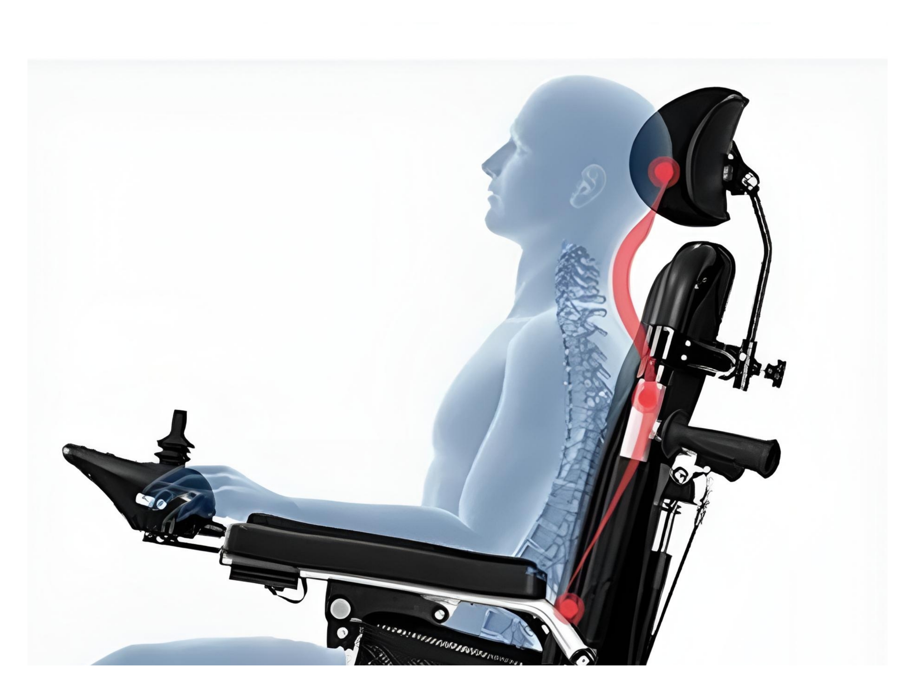 اما یکی از نکاتی که این ویلچر را واقعاً متفاوت میکند، وجود سیستم جک برقی تنظیم زاویه پشتی است.