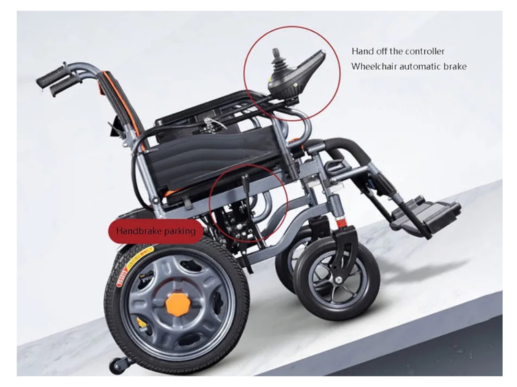 این ویلچر برقی مجهز به ترمز مغناطیسی اتوماتیک است؛ سیستمی هوشمند که به محض رها شدن جویاستیک یا خاموش شدن دستگاه، بهصورت خودکار فعال میشود و ویلچر را فوراً و بدون لغزش متوقف میکند.