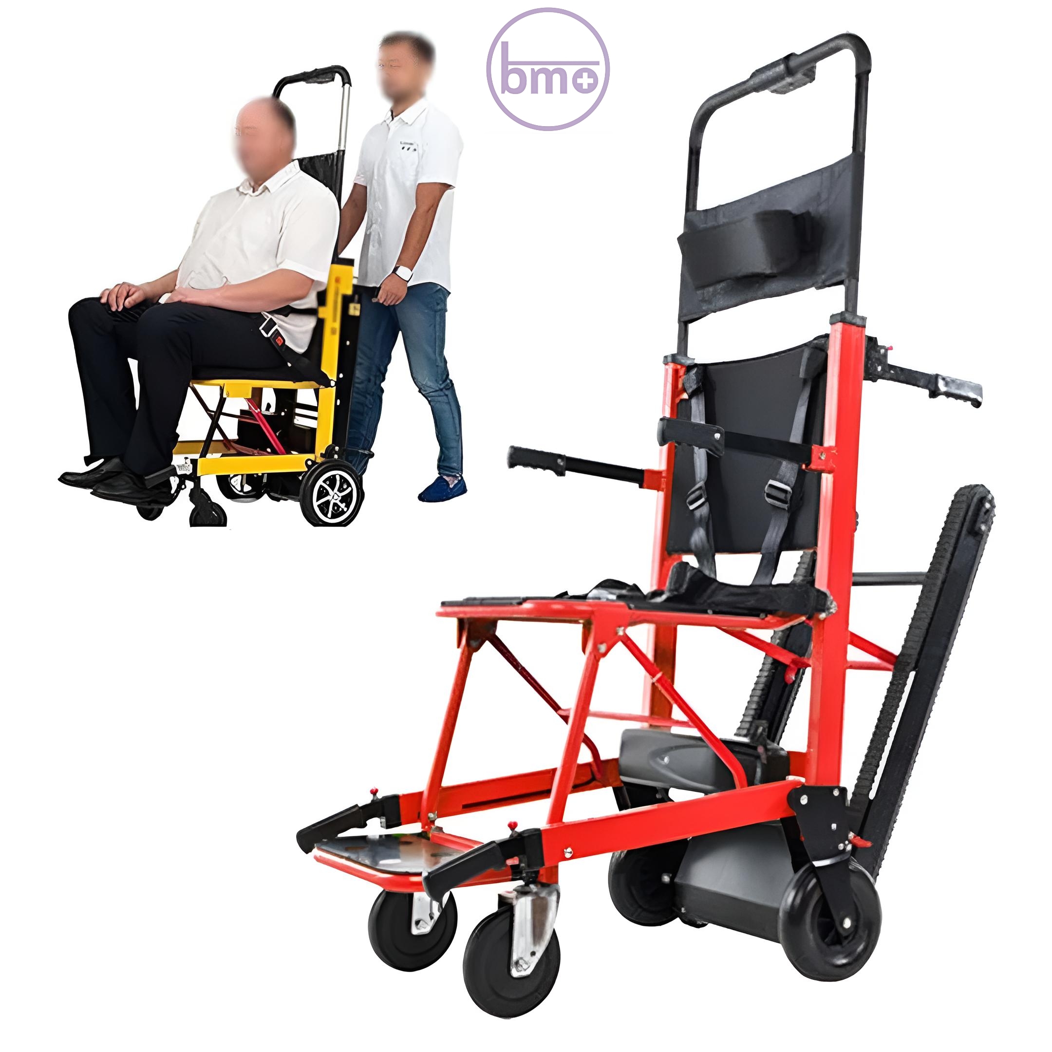 این ویلچر برقی پلهرو دقیقاً برای حل همین مشکل طراحی شده؛ یعنی بدون بلند کردن دستی بیمار، بدون فشار به کمر همراه، و بدون خطر سقوط، بیمار را کاملاً ایمن از پله بالا یا پایین میبرد.