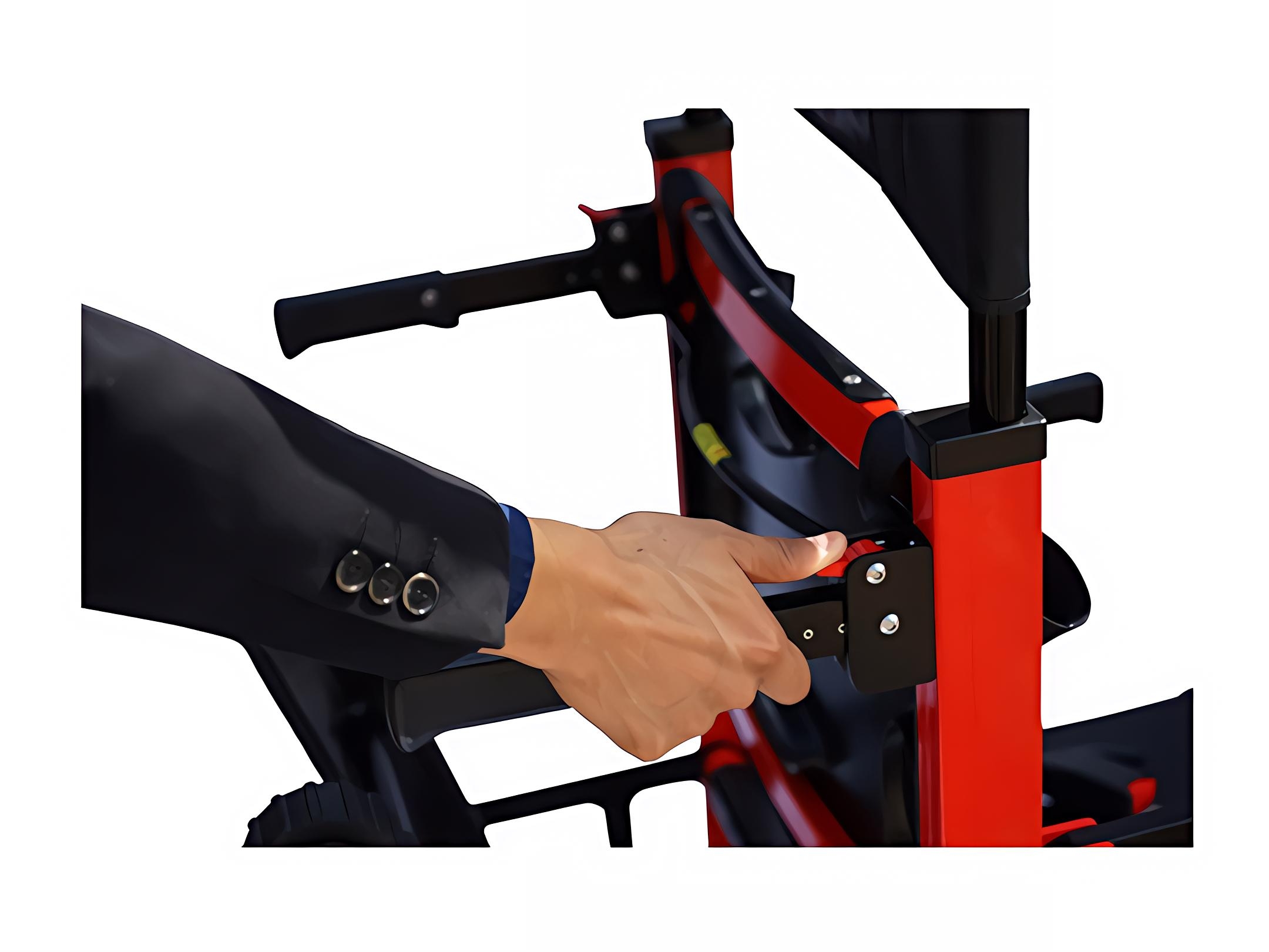 دستههای کناری این ویلچر برقی پلهرو بهصورت تاشو طراحی شدهاند تا انتقال بیمار از تخت به ویلچر یا بالعکس بهراحتی انجام شود.