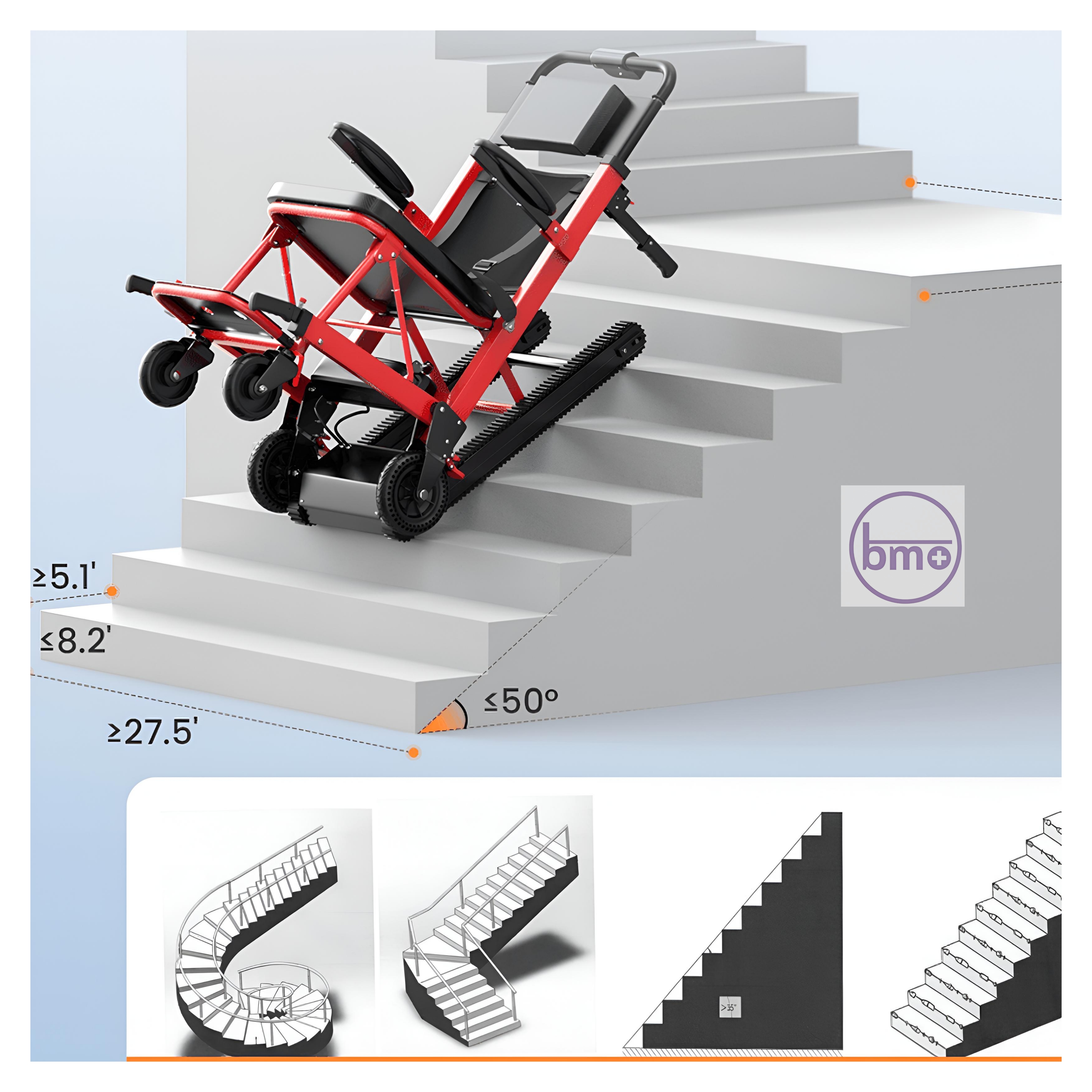 این سیستم توانایی عبور از پلههای با شیب زیاد را دارد و حتی در پلههای باریک یا ساختمانهای قدیمی نیز عملکردی ایمن و پایدار ارائه میدهد.