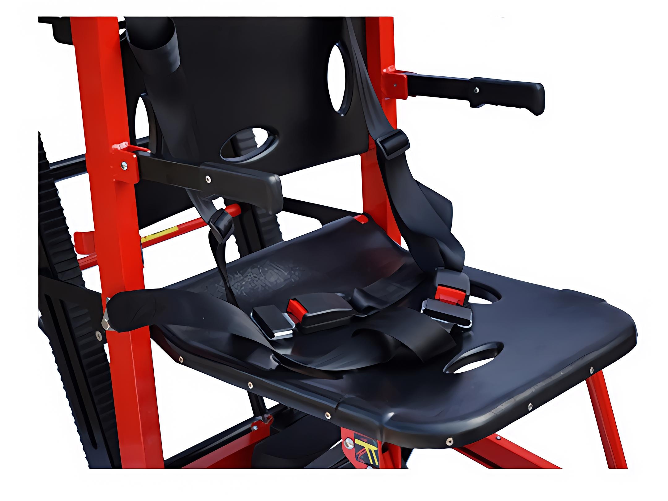 ویلچر برقی پله رو SGP بدون بلند کردن دستی بیمار، بدون فشار به کمر همراه، و بدون خطر سقوط، بیمار را کاملاً ایمن از پله بالا یا پایین میبرد.