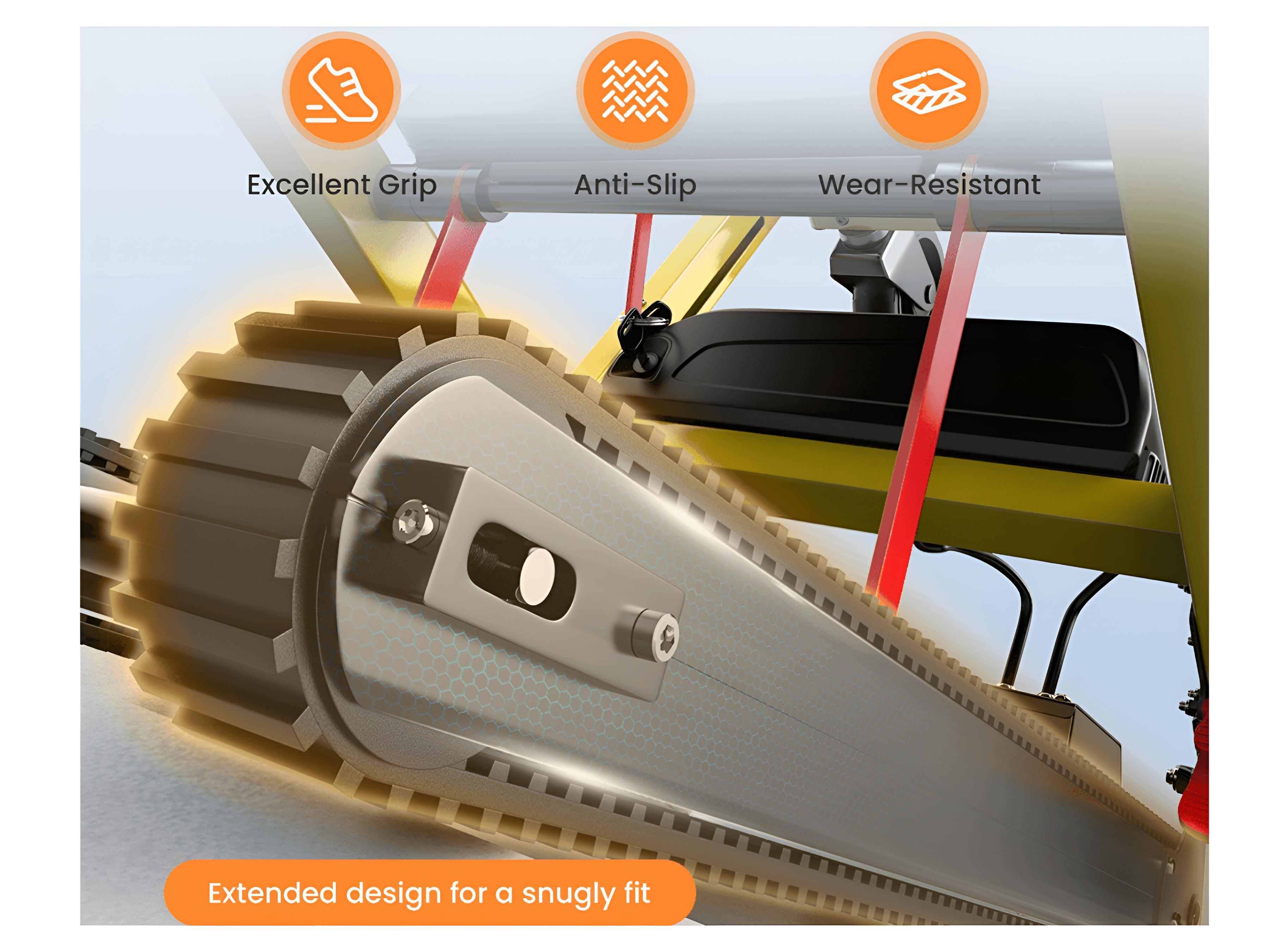 زیرپایی مقاوم و ایمن نیز بهگونهای طراحی شده که پاهای بیمار در وضعیت صحیح قرار بگیرند و در زمان حرکت روی پله، هیچگونه لغزش یا ناراحتی ایجاد نشود.
