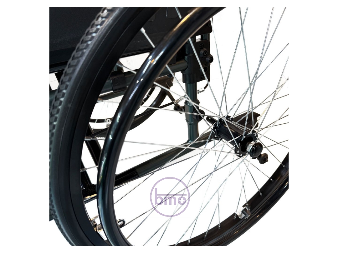 چرخهای عقب بزرگ طراحی شدهاند تا حرکت نرمتر و پایدارتری روی سطوح مختلف ایجاد شود. وجود رینگ دستگردان کنار چرخ عقب به کاربرانی که توان حرکتی دست دارند اجازه میدهد ویلچر را به صورت مستقل حرکت دهند.