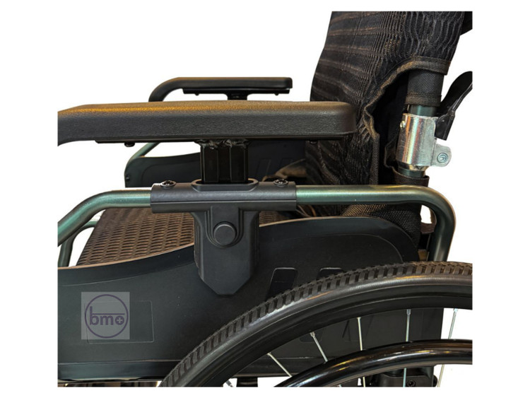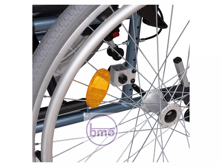 سیستم ترمز دستی مکانیکی روی چرخهای عقب نصب شده که با درگیر کردن مستقیم رینگ چرخ، از حرکت ناخواسته جلوگیری میکند. این ترمزها برای زمان انتقال بیمار، نشستن و برخاستن و توقف در شیب ضروری هستند.