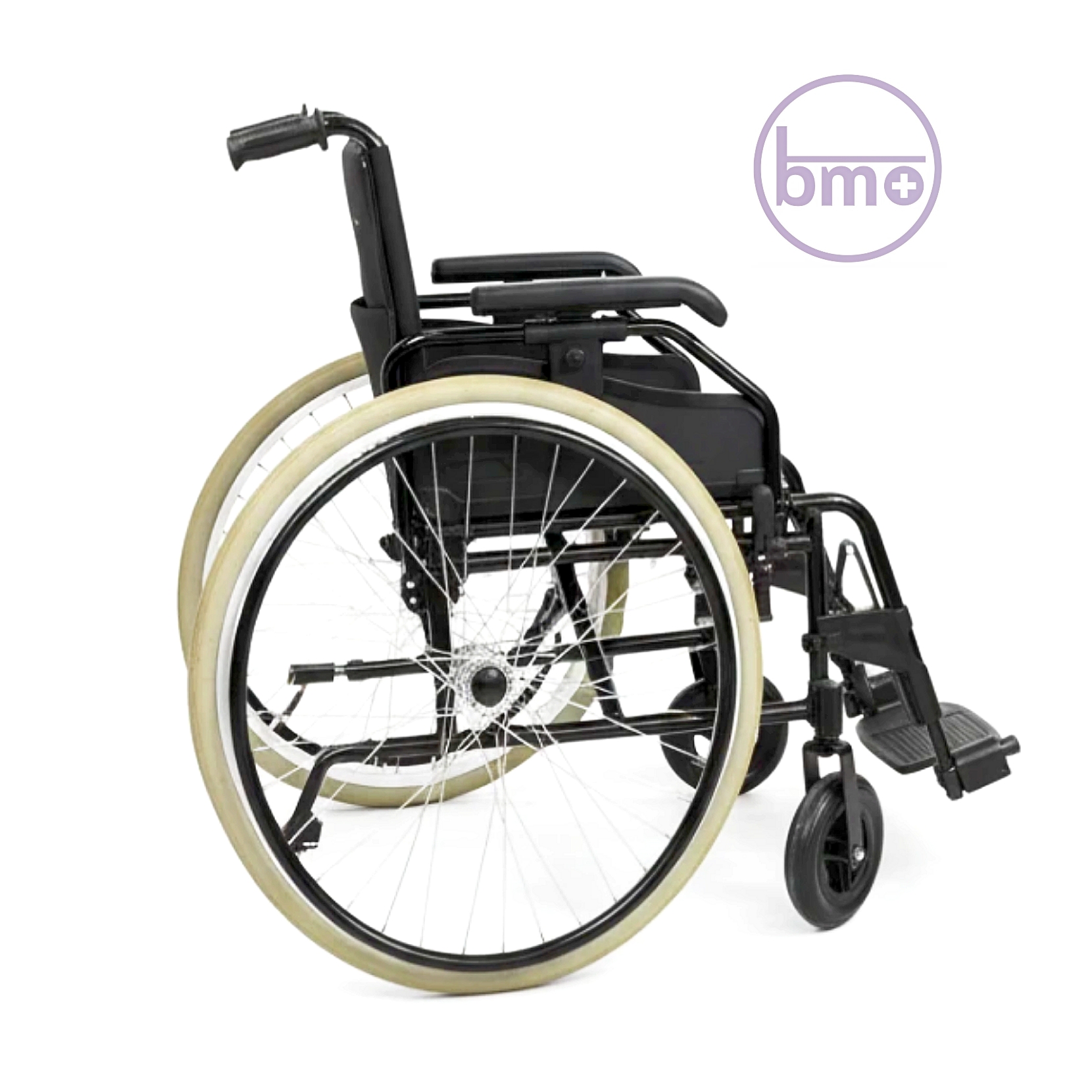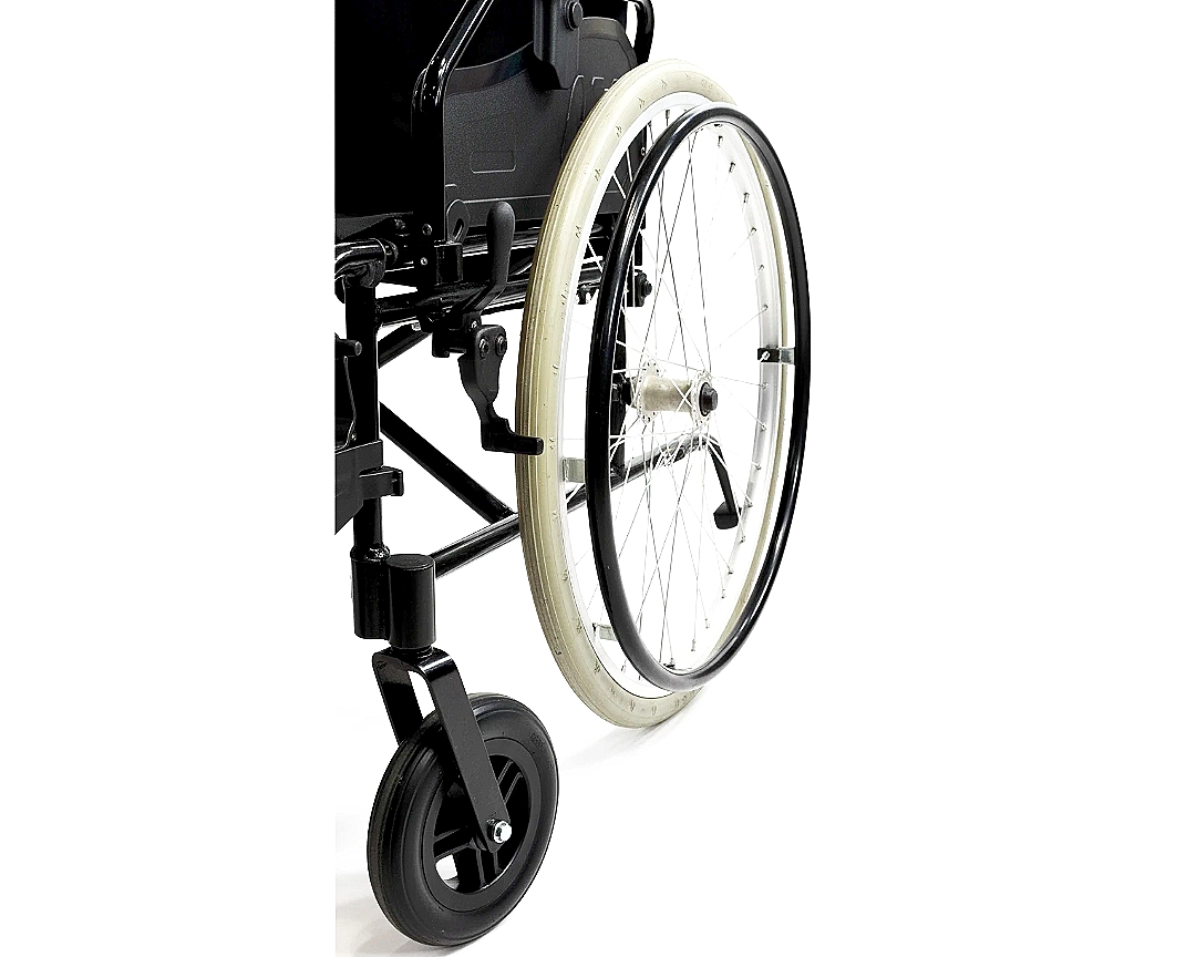 چرخهای عقب این ویلچر بزرگ و مقاوم هستند و به کاربر اجازه میدهند حرکت روانتر و کنترل بهتری روی ویلچر داشته باشد.