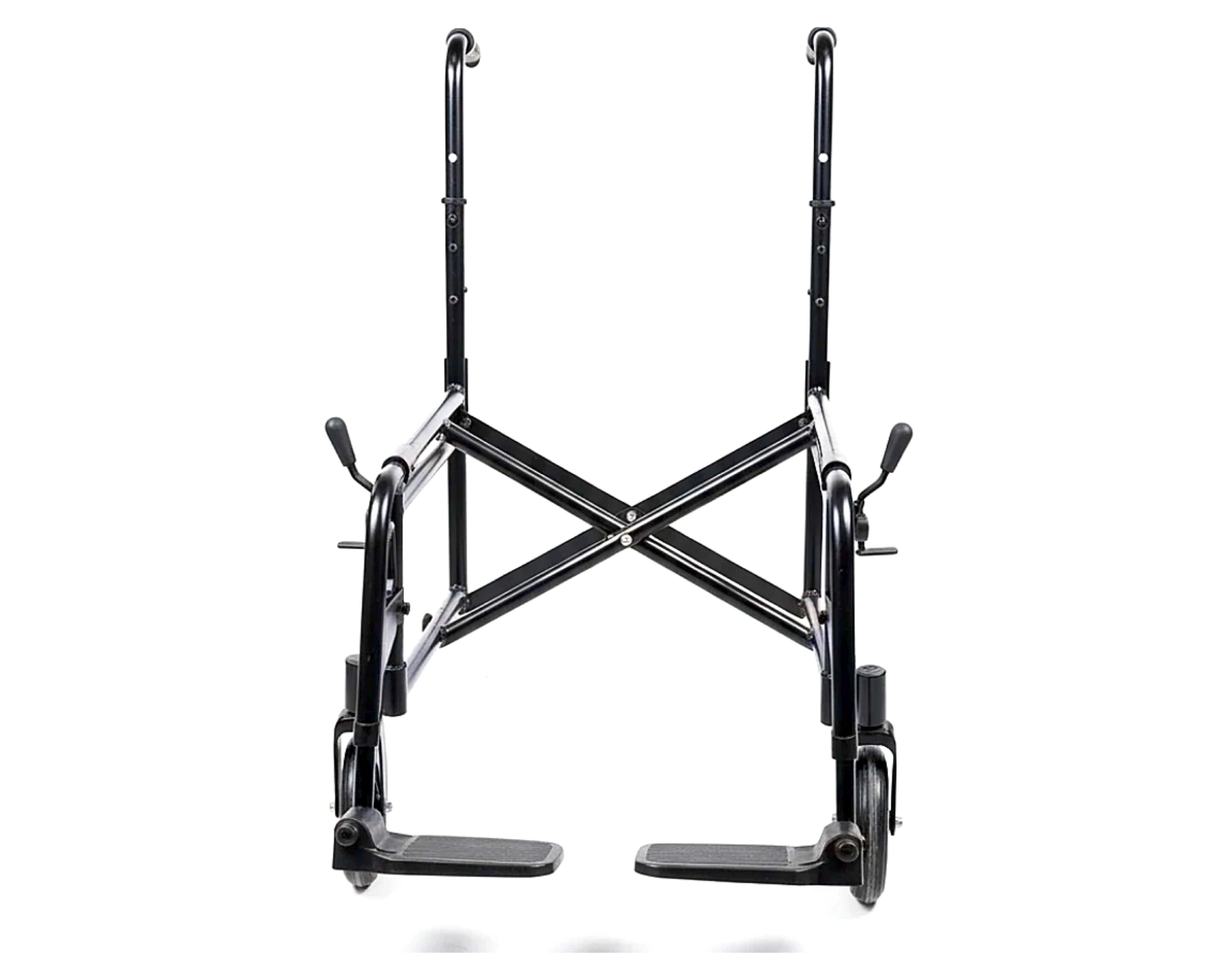 این ویلچر دارای شاسی فلزی مقاوم با ساختار ضربدری (Cross Frame) است که علاوه بر استحکام بالا، امکان جمع شدن سریع ویلچر را نیز فراهم میکند.
