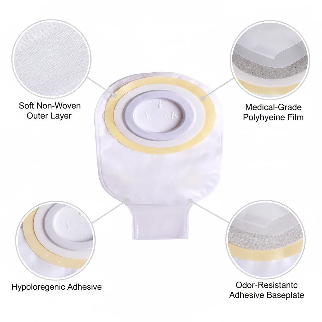 یکی از مهمترین ویژگیهای این کیسه، طراحی یک تکه (One Piece) آن است. در این مدل، چسب پایه و کیسه به صورت یکپارچه طراحی شدهاند. همین موضوع باعث میشود نصب آن روی بدن بسیار سادهتر باشد و بیمار یا مراقب بیمار بتواند در مدت زمان کوتاهی آن را استفاده کند.