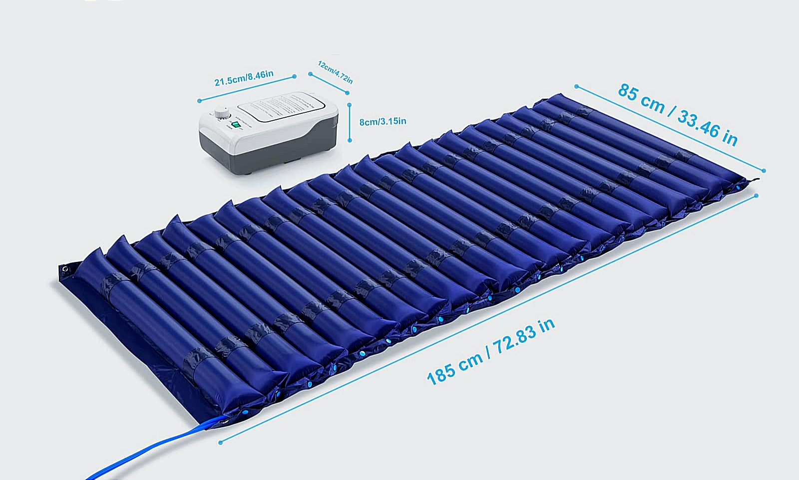 پمپ با استفاده از دو مسیر خروجی هوا، سلولها را به صورت **تناوبی در چرخههای چند دقیقهای** پر و خالی میکند. این چرخهها باعث ایجاد همان حرکت موجی ملایم در سطح تشک میشوند که از ویژگیهای اصلی تشکهای مواج استاندارد محسوب میشود.