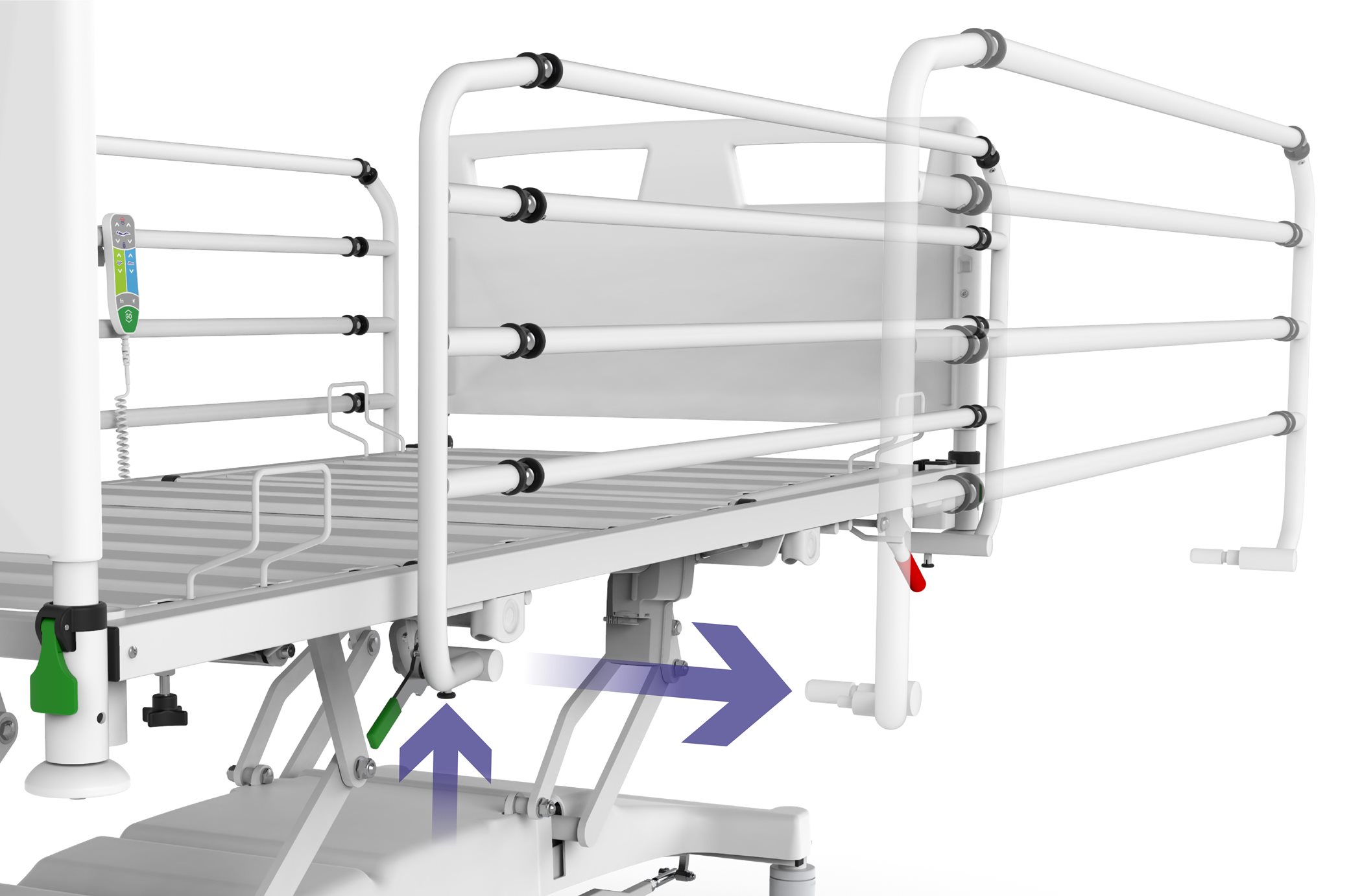 بدسایدهای آکاردئونی این تخت، فراتر از یک حفاظ معمولی، بخشی از پروتکل ایمنی بیمار هستند.