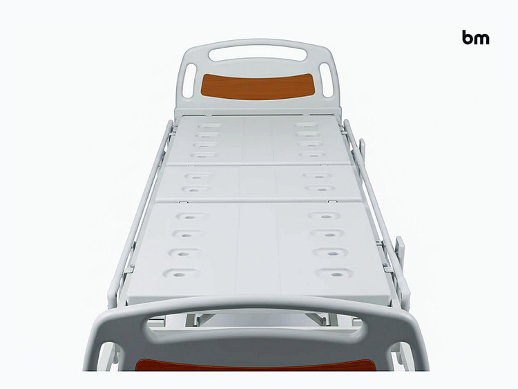 کفی تخت با رویه ABS یکپارچه، دارای منافذ مهندسیشده برای گردش هوا جهت جلوگیری از تعریق بیمار و کاهش ریسک ابتلا به زخم بستر است.